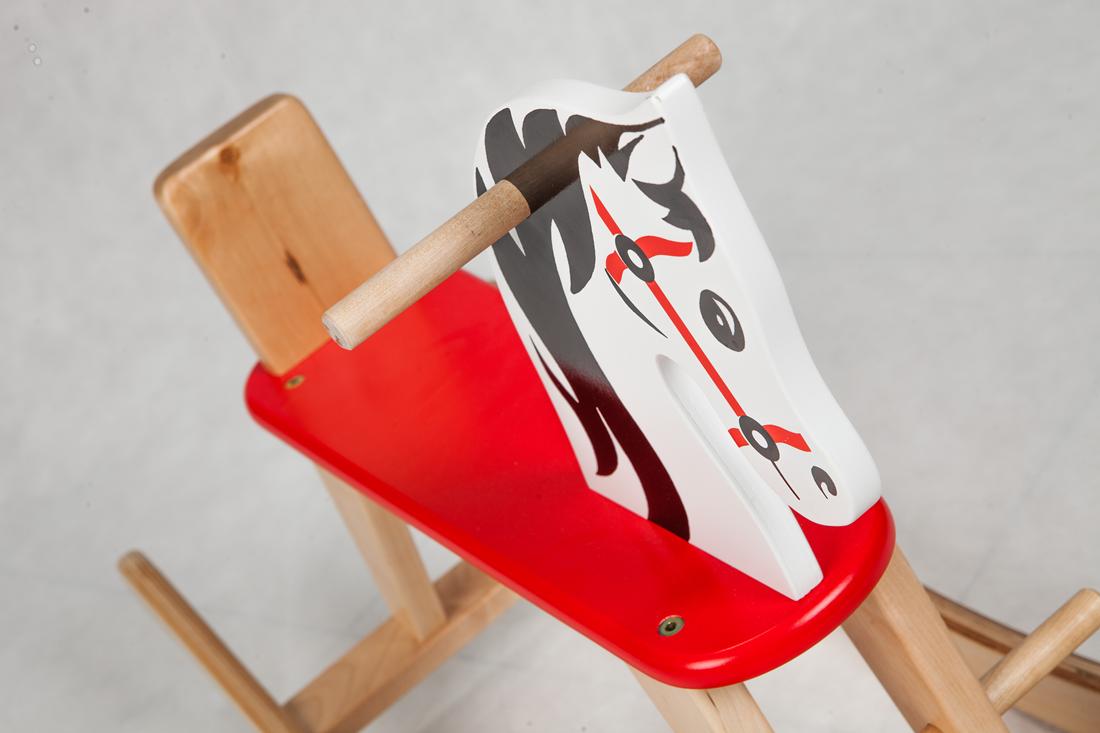 Dzięki oparciu młodsze dzieci będą pewniej siedziały na koniku, a zakrzywione na końcach płozy uchronią przed wywrotka.