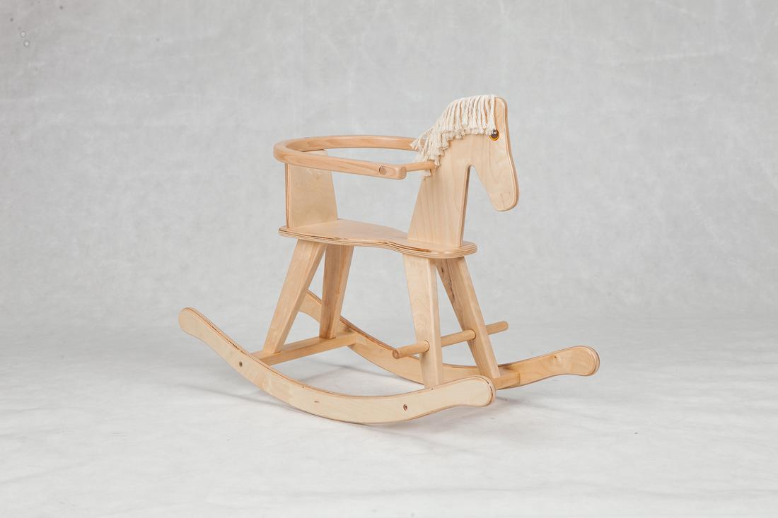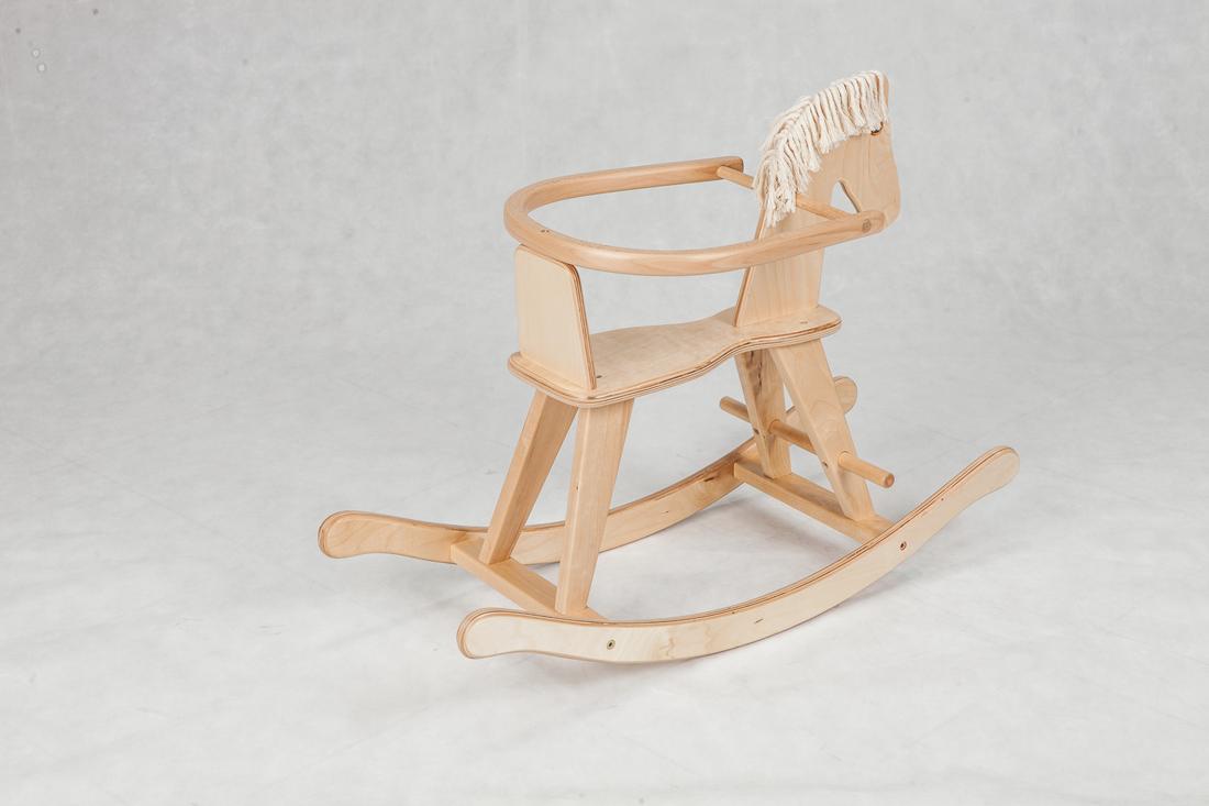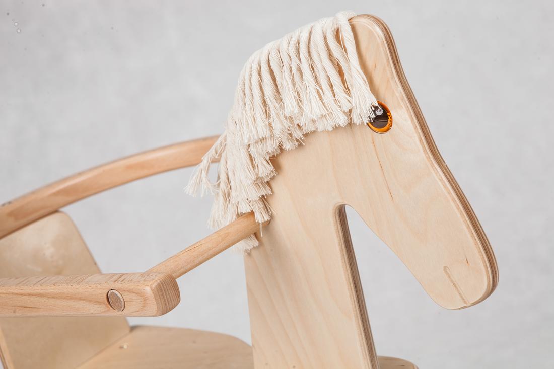 Dzięki oparciu młodsze dzieci będą pewniej siedziały na koniku, a zakrzywione na końcach płozy uchronią przed wywrotka.