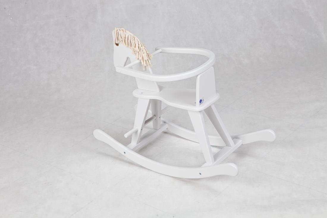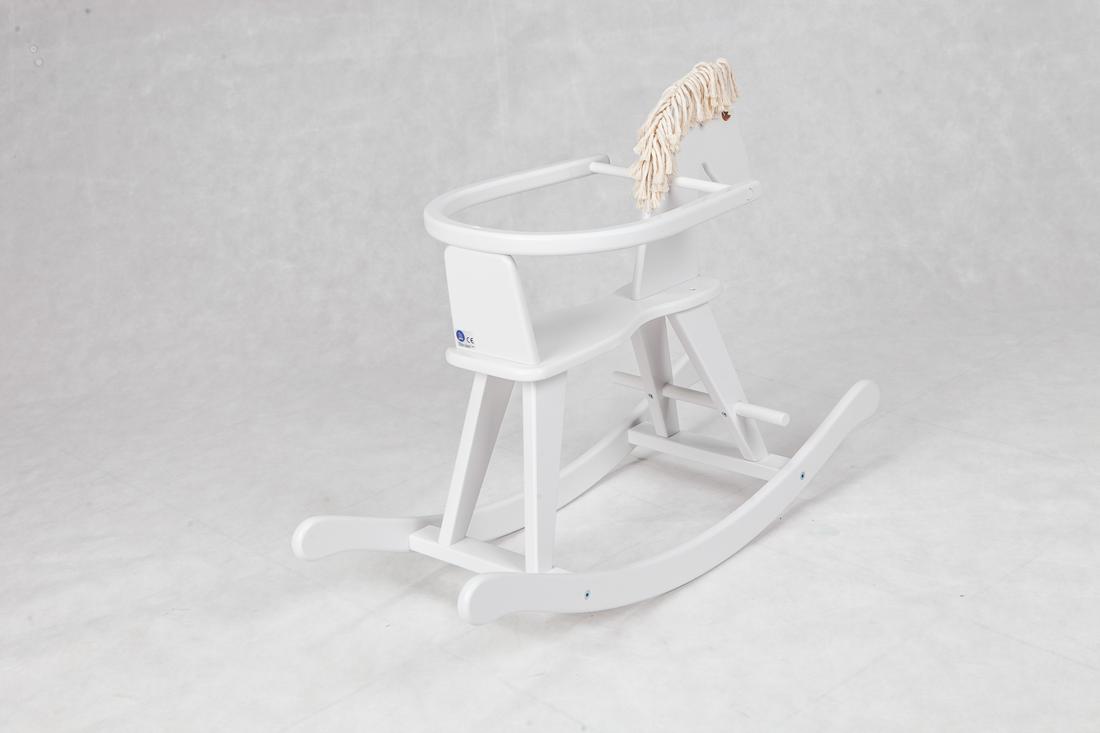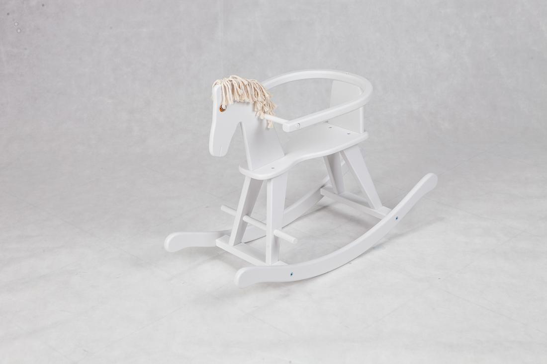 Dzięki oparciu młodsze dzieci będą pewniej siedziały na koniku, a zakrzywione na końcach płozy uchronią przed wywrotka.