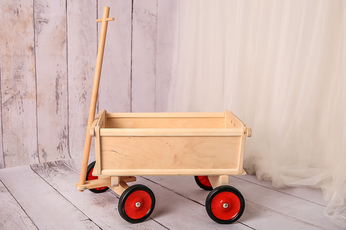 Drewniany wózek do ciągnięcia Antek sprawi że zabawa w domu jak i na dworze stanie się o wiele łatwiejsza.