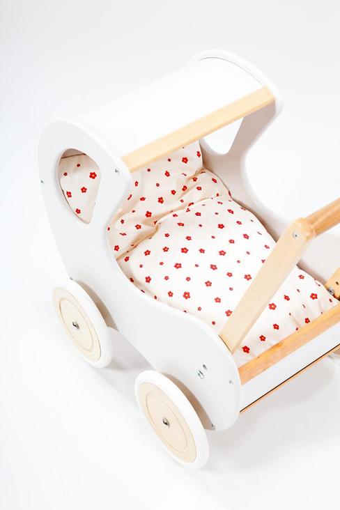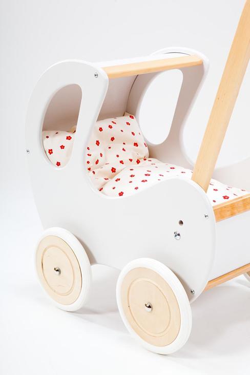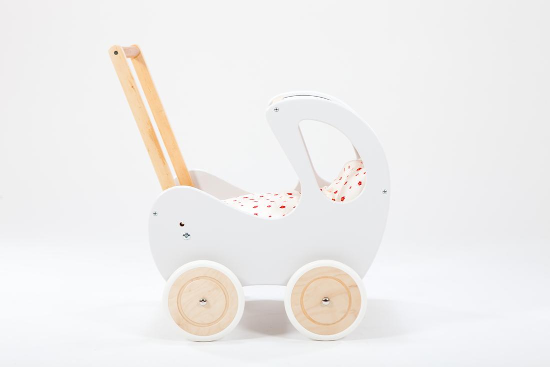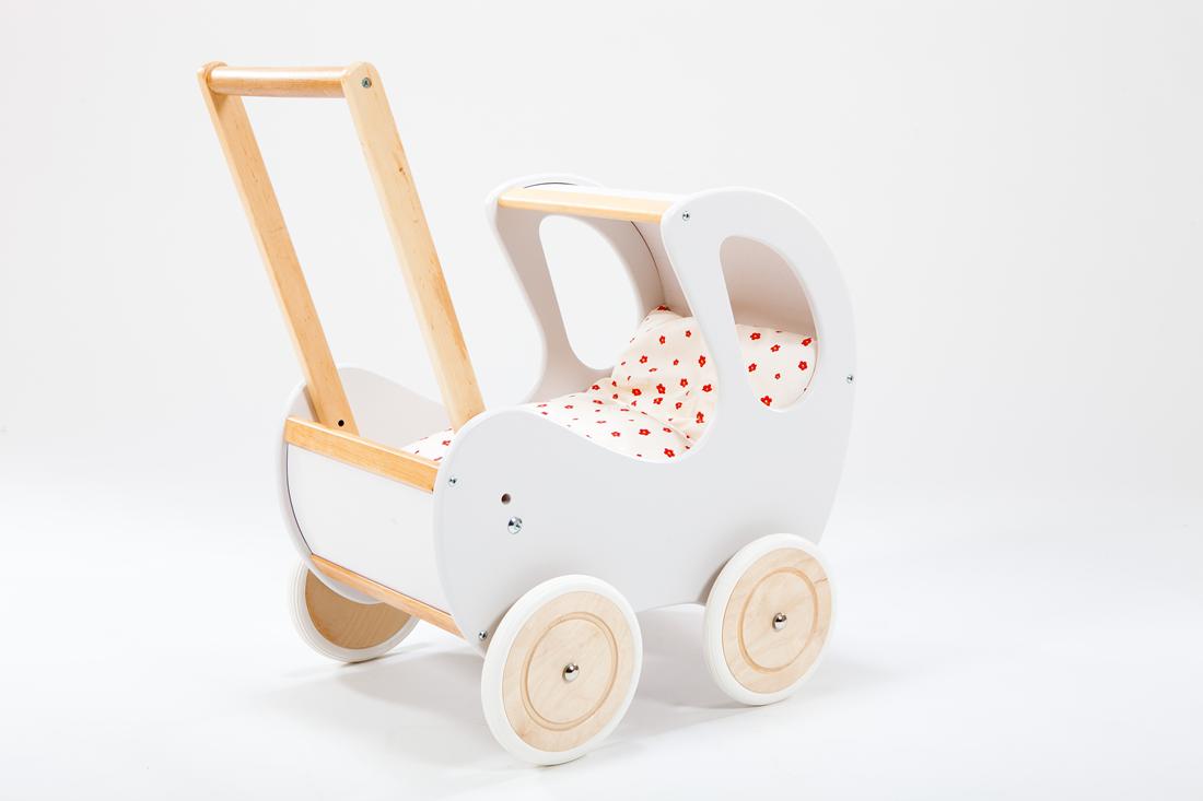 Wózek dla lalek wykonany z ekologicznych materiałów.