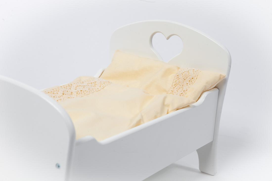Starannie wykonane łóżeczko ozdobione motywem serduszka będzie delikatnym akcentem dekoracyjnym.