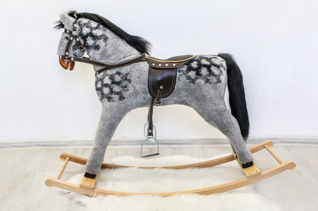 Śliczny bujany konik na biegunach zapewni wiele godzin doskonałej zabawy.